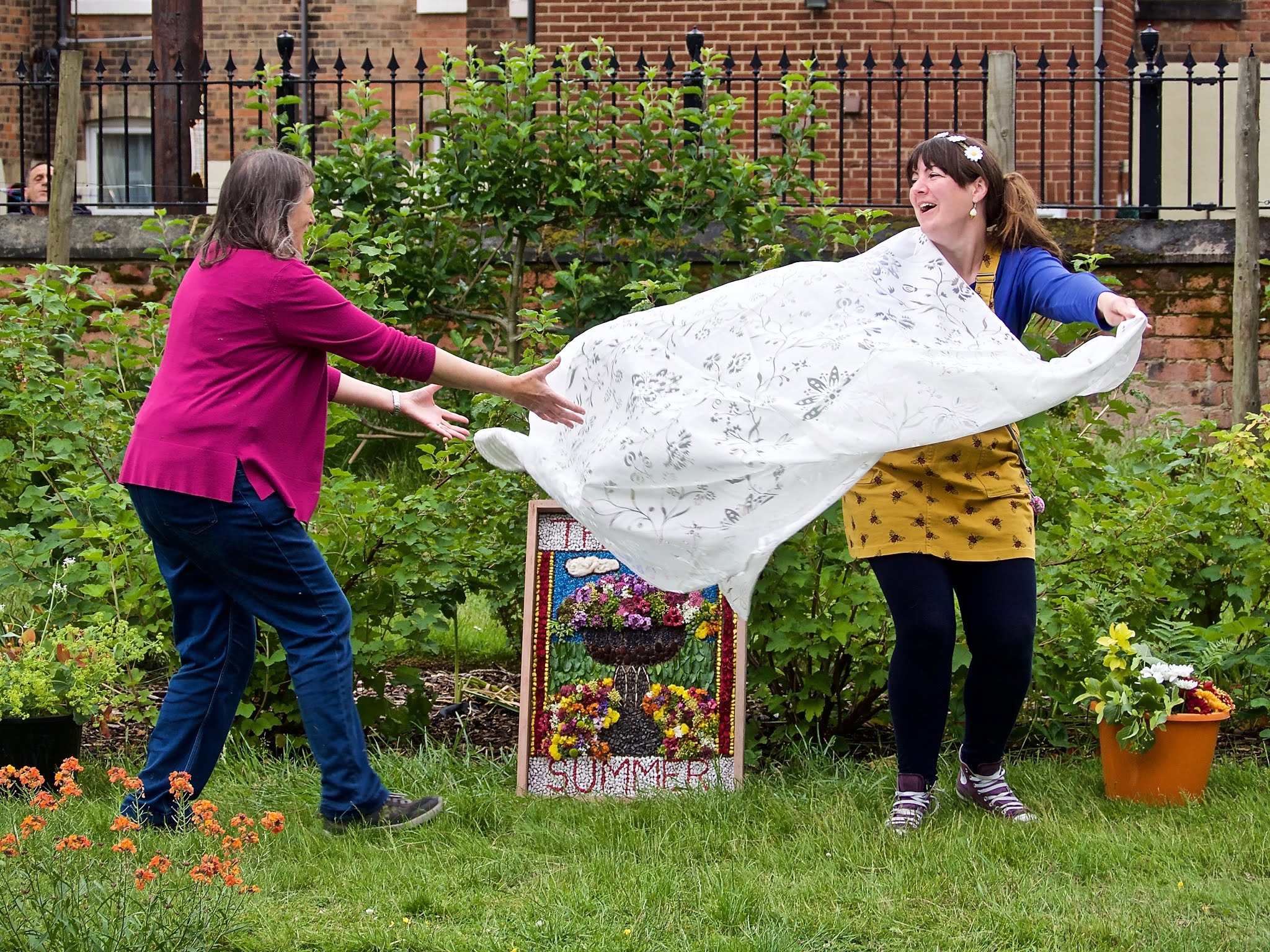 We had a whole week making 5 super well dressings in Grove Lodge. We worked with Rosehill Infants, St James Infants, Derbyshire Refugee Solidarity and many lovely volunteers. The well dressings were launched on the community garden in Derby Arboretum with a great celebration.